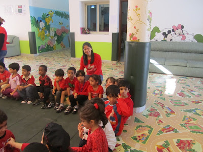 You can cut a red ribbon and say "Red is wonderful". Let them attach the red ribbon on their clothes and wear them on red day.
